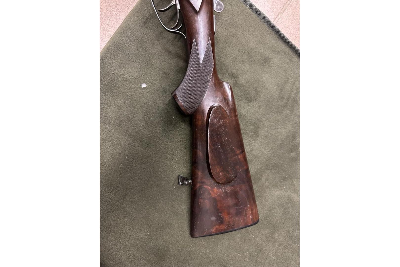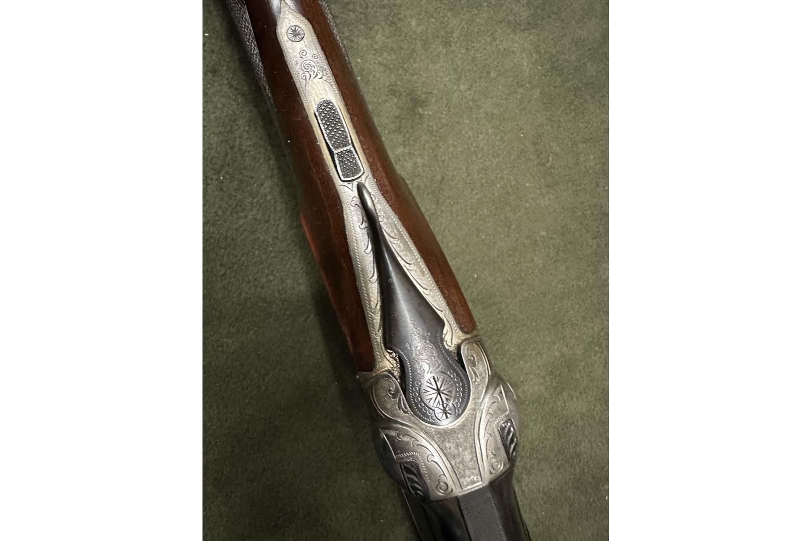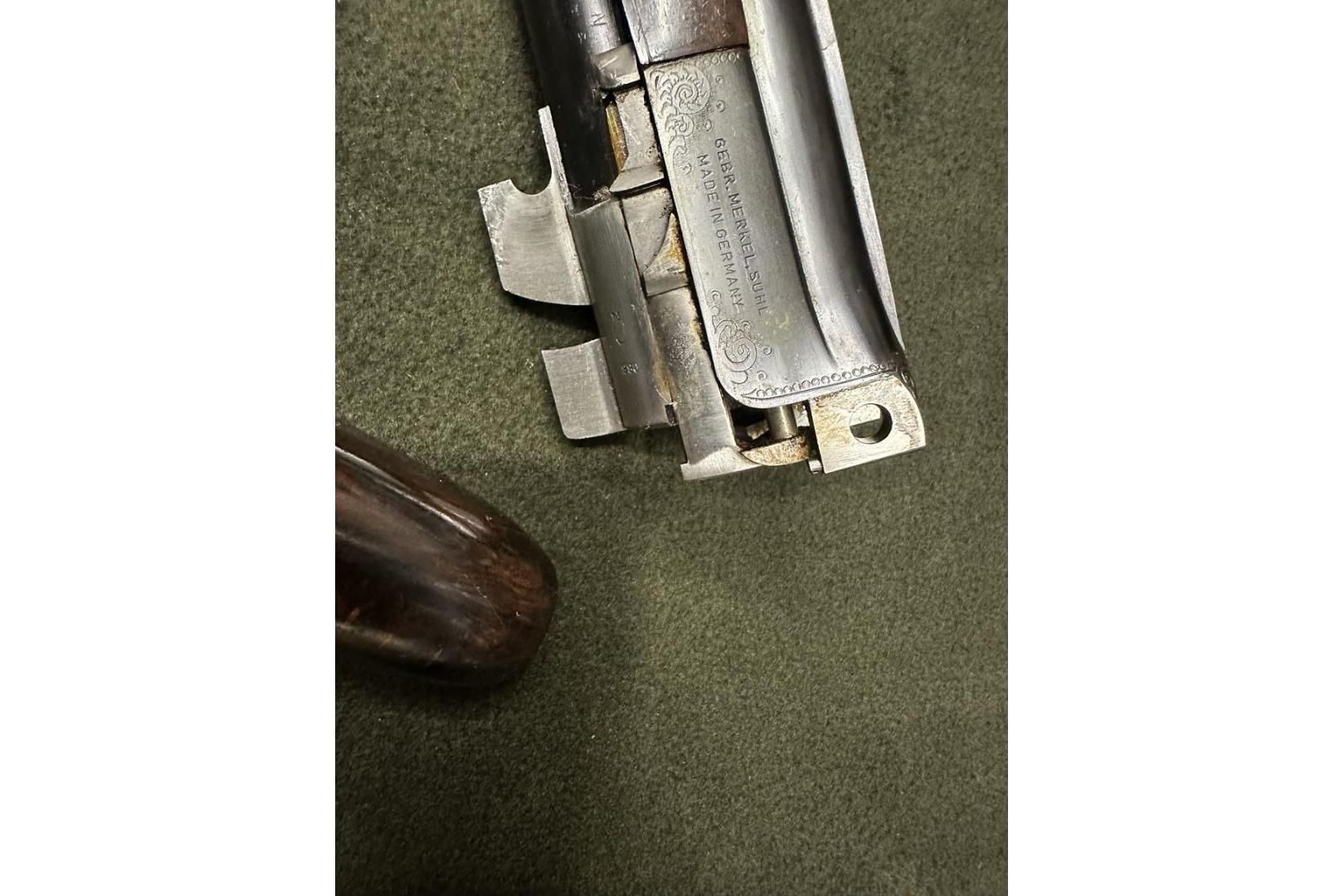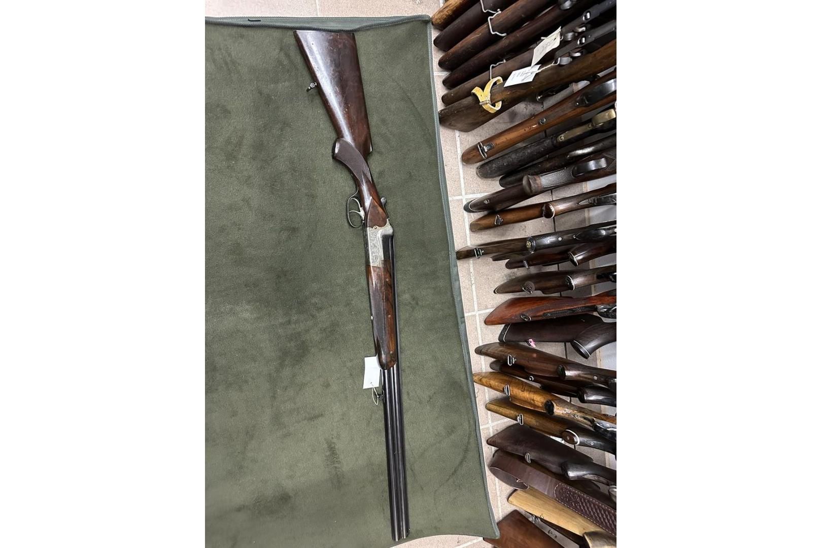 Bock Merkel 201E kal. 12/70. Lufy, dł 71cm, ładnie grawerowany, posiada wyrzutniki, wnętrze luf bdb. Rok prod 1990.