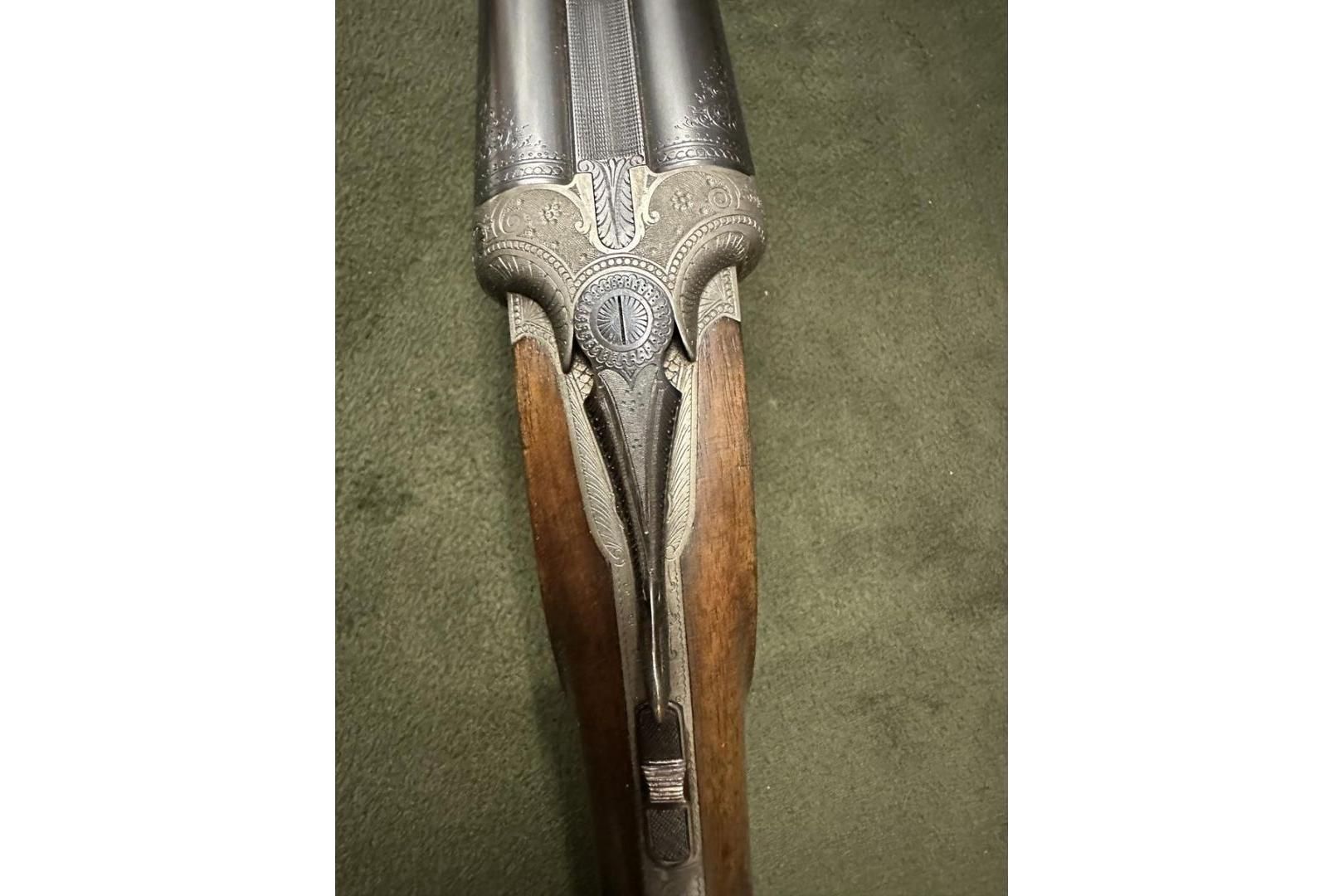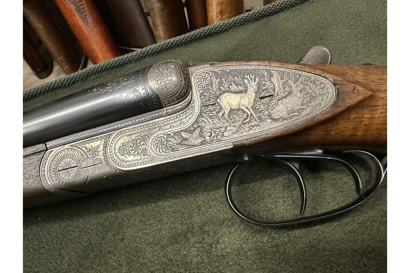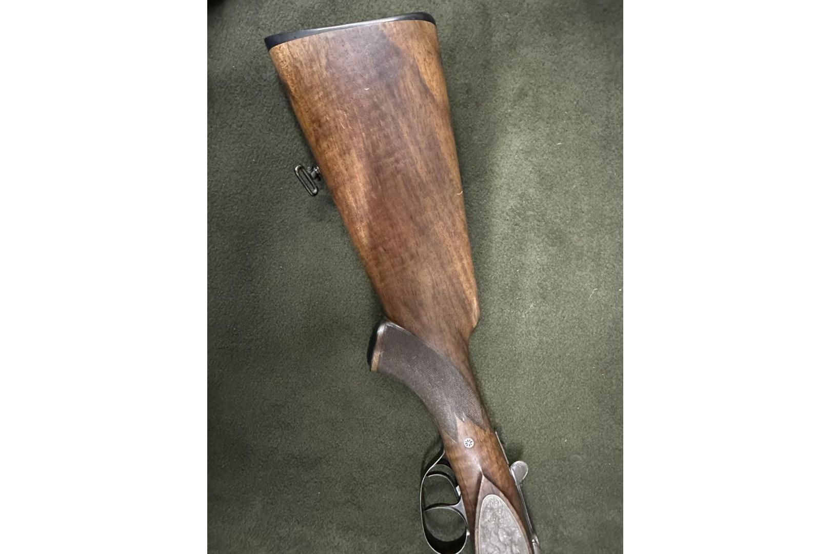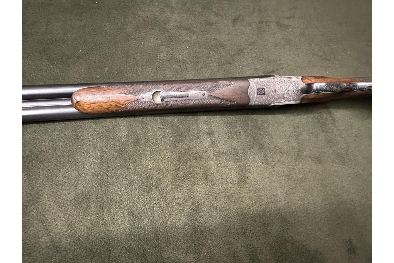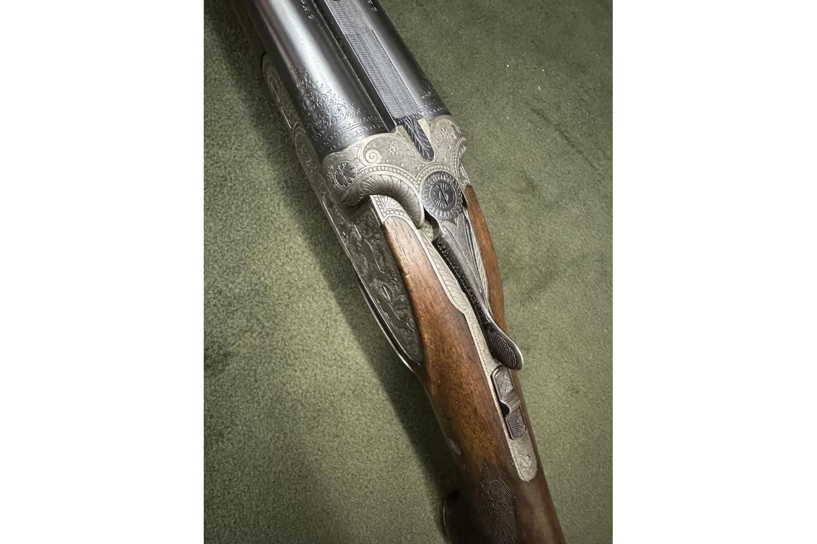 Dubeltówka Simson kal. 16/70, bardzo ładnie grawerowane pełne blaty, posiada wyrzutniki lufy ze stali Krupp, dł 72cm, rok prod. 1950, stan bdb.