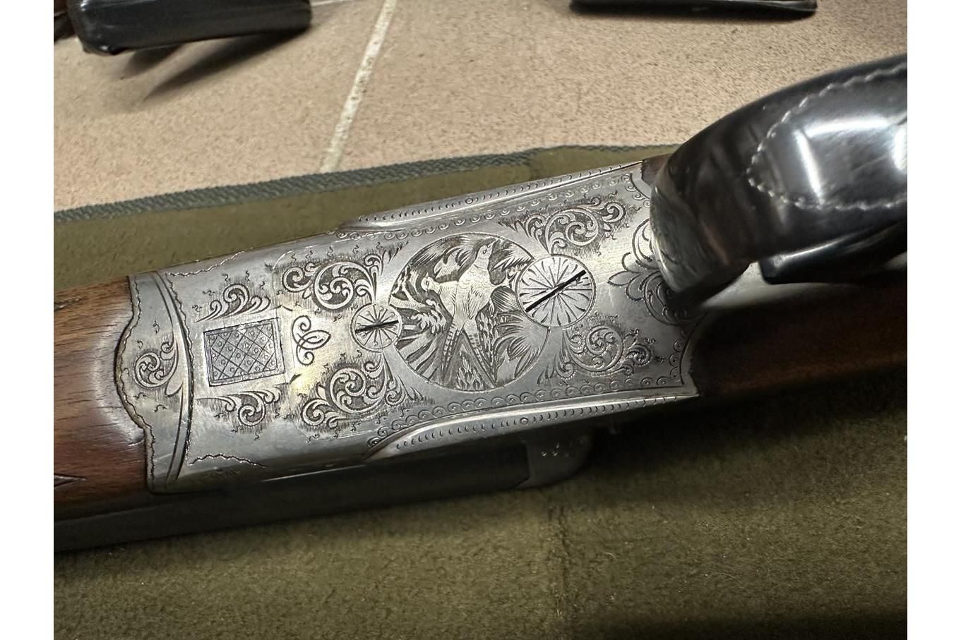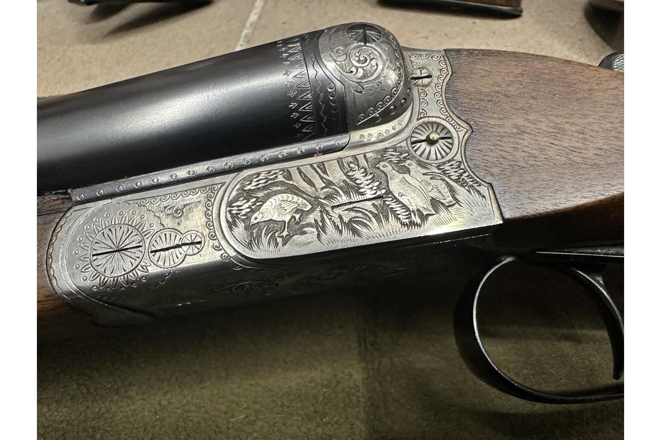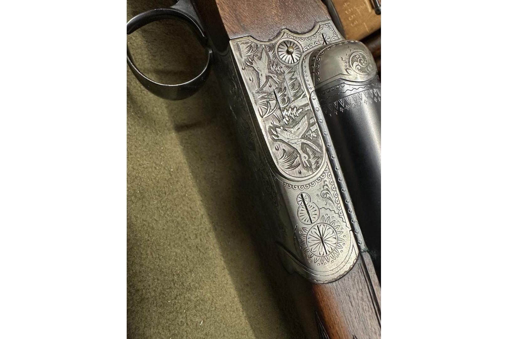 Dubeltówka Simson Suhl kal. 12/70, broń w perfekcyjnym stanie, ładnie grawerowana, lufy dł71cm, posiada wyrzutniki.