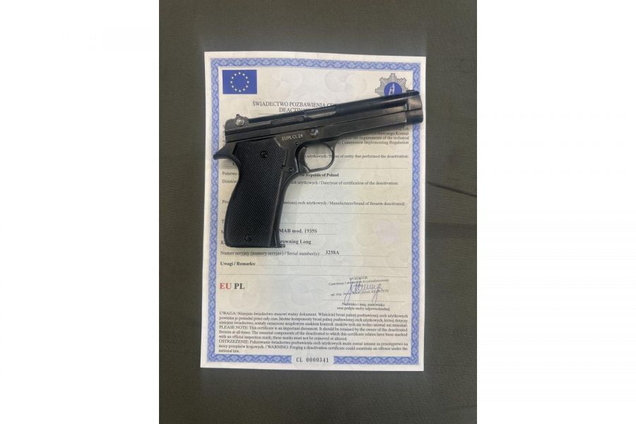 Pistolet MAB mod. 1935S pozbawiony cech użytkowych zgodnie z normami EU z certyfikatem CLKP.